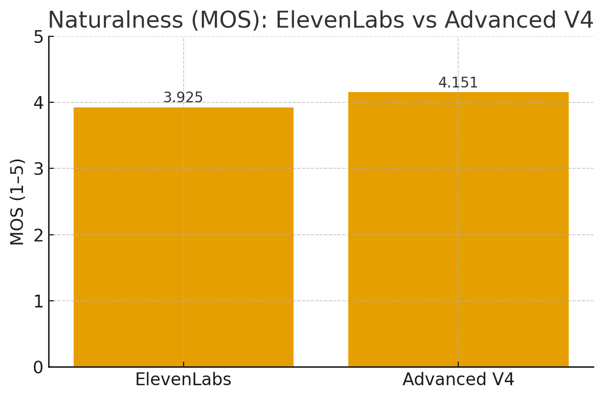 When it comes to naturalness, Voice Harbor V4 matches the best. On the LibriSpeech benchmark, our Advanced V4 model achieved a MOS of 4.15, slightly surpassing ElevenLabs at 3.93 — proving that anonymized voices can sound just as natural, if not better.